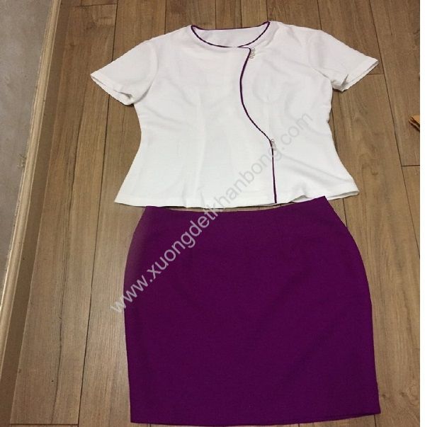 Ảnh: Bộ đồng phục Spa áo trắng váy tím viền tím