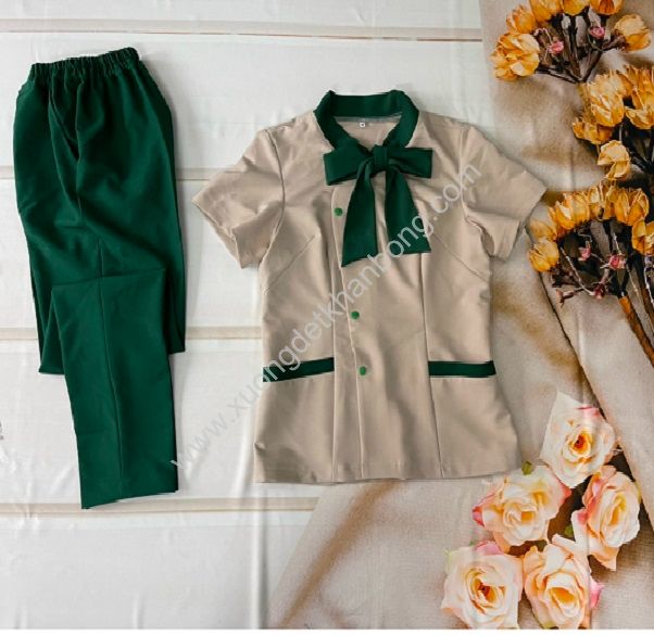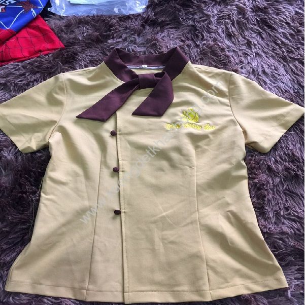 Ảnh: Áo đồng phục Spa màu be có nơ cổ
