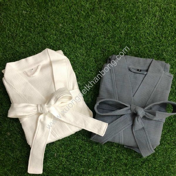 - Áo choàng tắm khách sạn tổ ong (Cotton): Cũng được nhiều khách sạn 4 5 sao lựa chọn bởi độ sang trọng cũng như thể hiện sự đẳng cấp khi sử dụng choàng tắm tổ ong này.