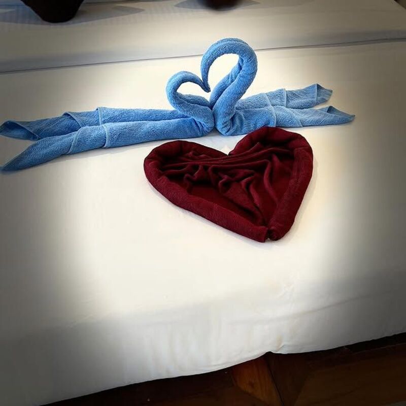 Cách gấp thành hình trái tim cũng là một kiểu gấp phổ biến. Đối với cách gấp khăn trang trí giường khách sạn này chủ yếu phù hợp với phòng cho các cặp đôi khi đến nghỉ dưỡng tại đây. Dưới đây là các bước chi tiết để gấp được khăn thành hình trái tim: